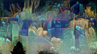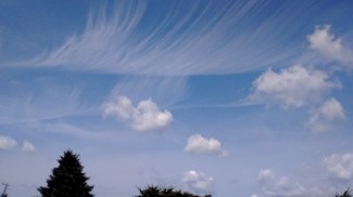 In the lower right, the original photo, of a feather in the clouds. The others are filtered through Dreamscope app.