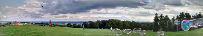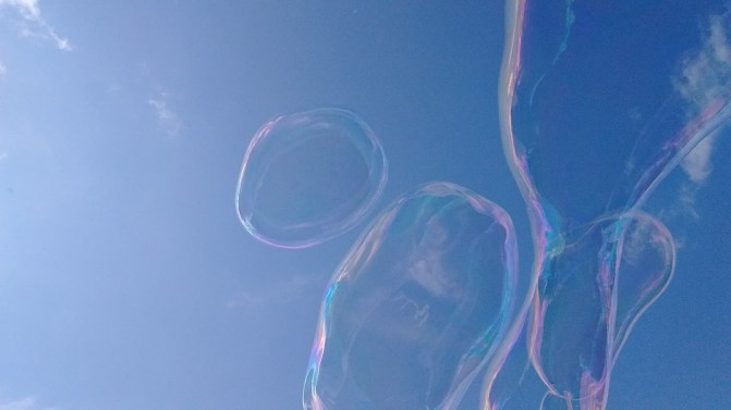 2. Bubbles. Also at the park, a couple had brought along several buckets full of soap solution and long rope-style bubble wands. They created enormous bubbles.