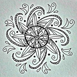 I was reading the other day about the Scottish term caim, the circle of magic protection that you draw about yourself. I got to thinking about how I could use the idea as a drawing meditation, incorporating the protection prayer/spell into a mandala drawing. In a mandala, I always begin in the center, and then work outward, often referencing the energy points that I make note of in meditation. Here are a couple mandalas I drew today with the purpose of drawing a circle of protection about myself. The first was very enclosed, safe. Perhaps because the first established such secure boundaries, I was freer to whirl outward in the second.