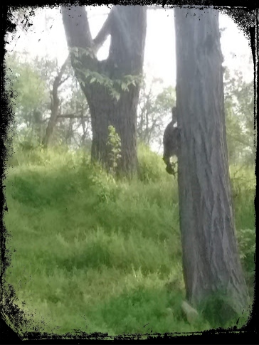 Yesterday we watched Mama Raccoon fetch two kits from the hollow in the Locust Tree (I was wrong–it isn’t a walnut). The second kit was really antsy and looked ready to climb down after her. She was back within short minutes to get Rowdy. This morning, I think she carried that one down before the other, because the one we’ve seen so far was large and schuslich. We saw the other one peeking down as she took Rowdy down the tree, but she’s been gone a long time, and Timid must have gone back to bed in the hollow. I imagine Rowdy must be giving her a hard time down in the woods, wherever she’s taken them. I wish she would hurry back. Who knew wildlife watching could be so anxiety-riven? And I thought it was hard to move a toddler and a baby from the car to the house. I mean, that WAS a challenge, but at least I wasn’t leaving one high up in a tree while carting the other to a safe location, then having to trust that the first one wouldn’t run off while I went back for the other. And we’re pretty sure she has three.