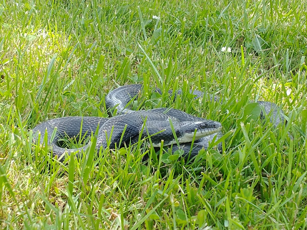 It was not a stick, and it was not dead. It was a four-foot long black snake, squiggled in upon herself. (Note on Snake Pronouns: “It” seems disrespectful, somehow, like I am refusing to acknowledge her beingness. And somehow singular “they” doesn’t quite feel right here either, so I am going to use she/her.)