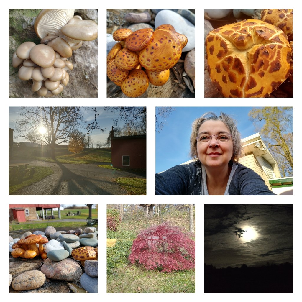 1. Pholiota limonella, the brilliant orange mushrooms that grow on my stump in late fall. And the oysters that join them.