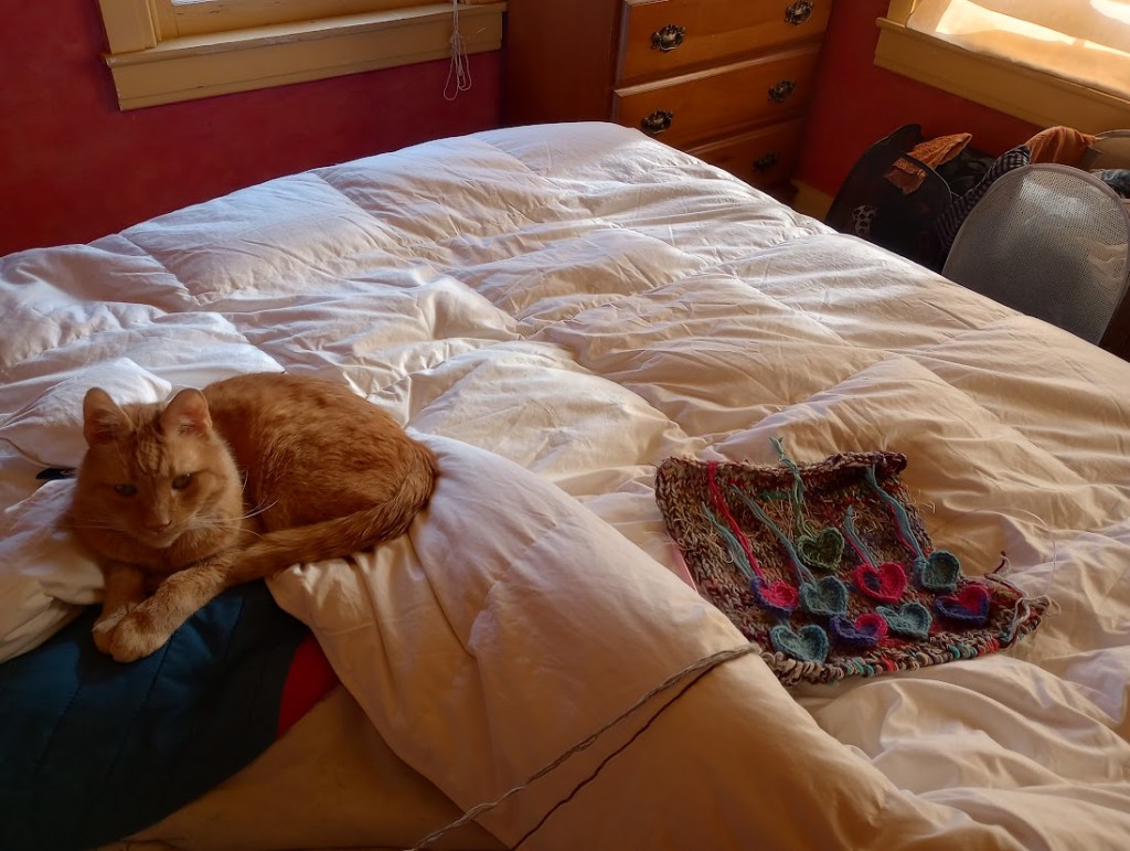 Today I got to the ribbing at the wrist of the sleeve, and made nine little hearts for Pride, holding onto that beautiful and loving energy of my students and their parents and my colleagues. May we all See each other with such gracious eyes.