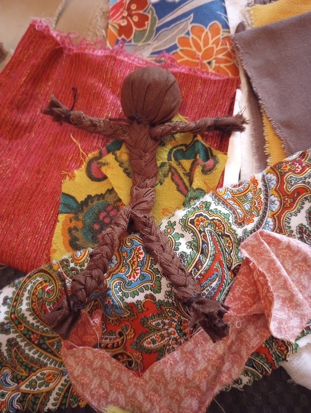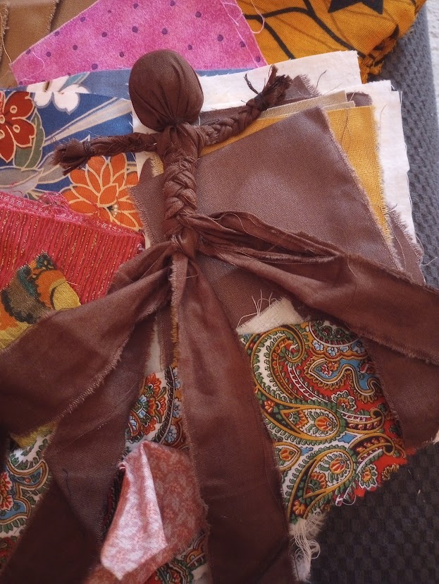 Starting on a new project today, getting another set of Little Protectors Dolls ready for Radiance. On my initial project list, I gave myself the goal of twenty. I have pieces cut for seven bodies right now, and I can get fabric laid out to cut another fifteen or so in the next couple of days. I braided one doll this evening, just so I could say I had done something other than just organize materials.