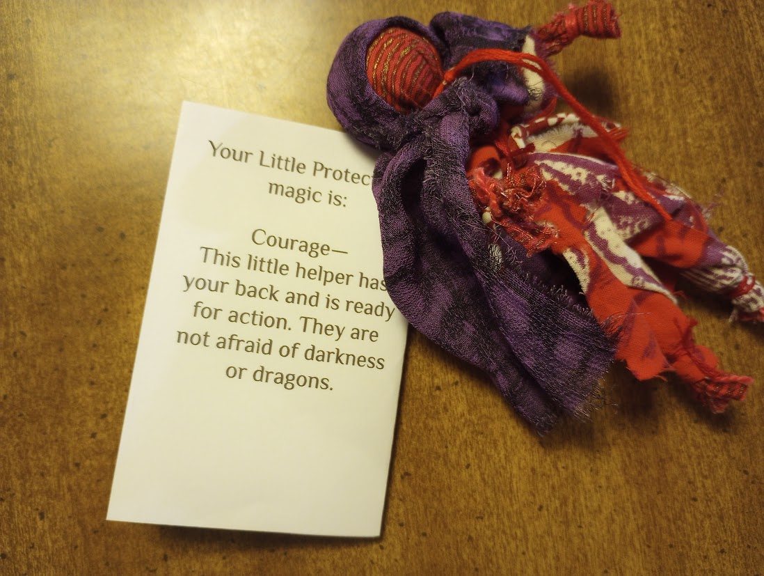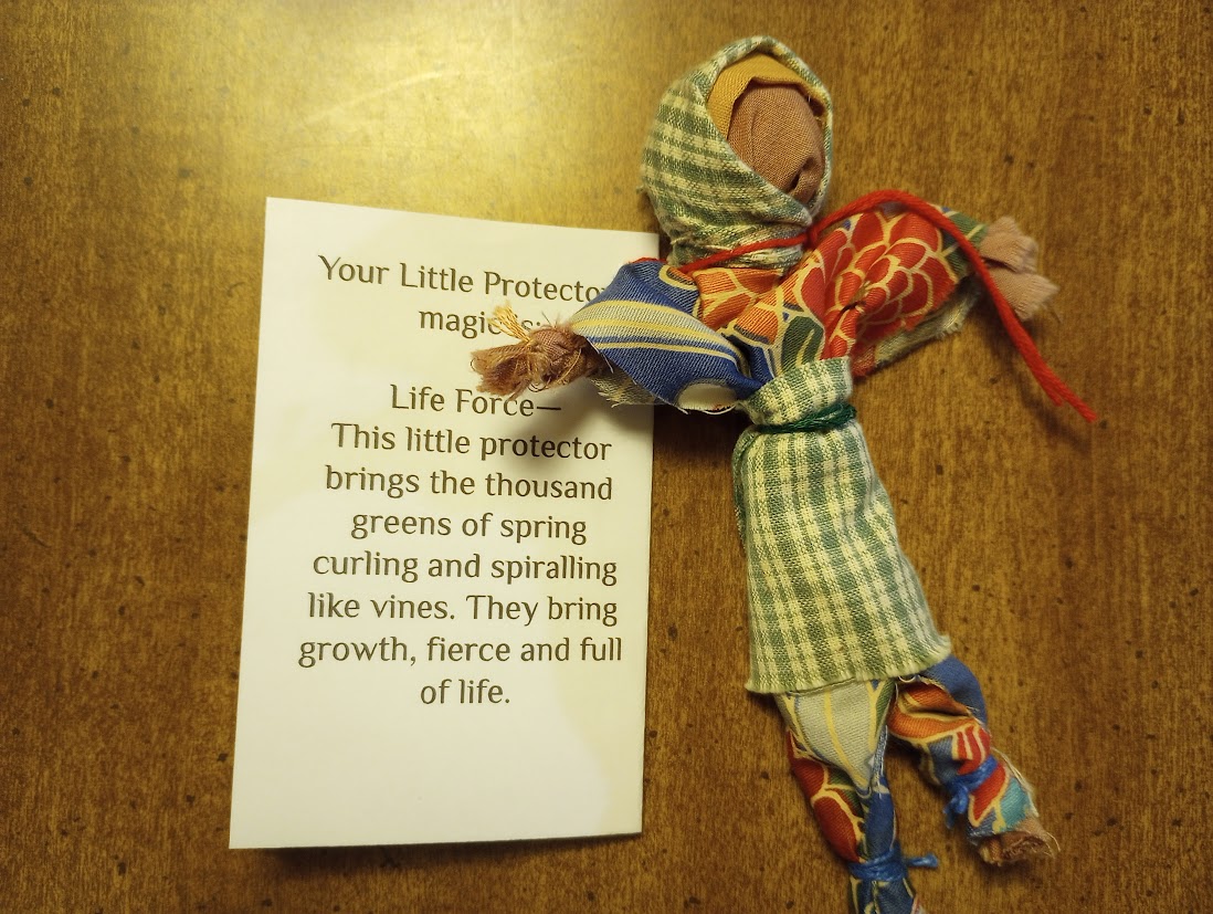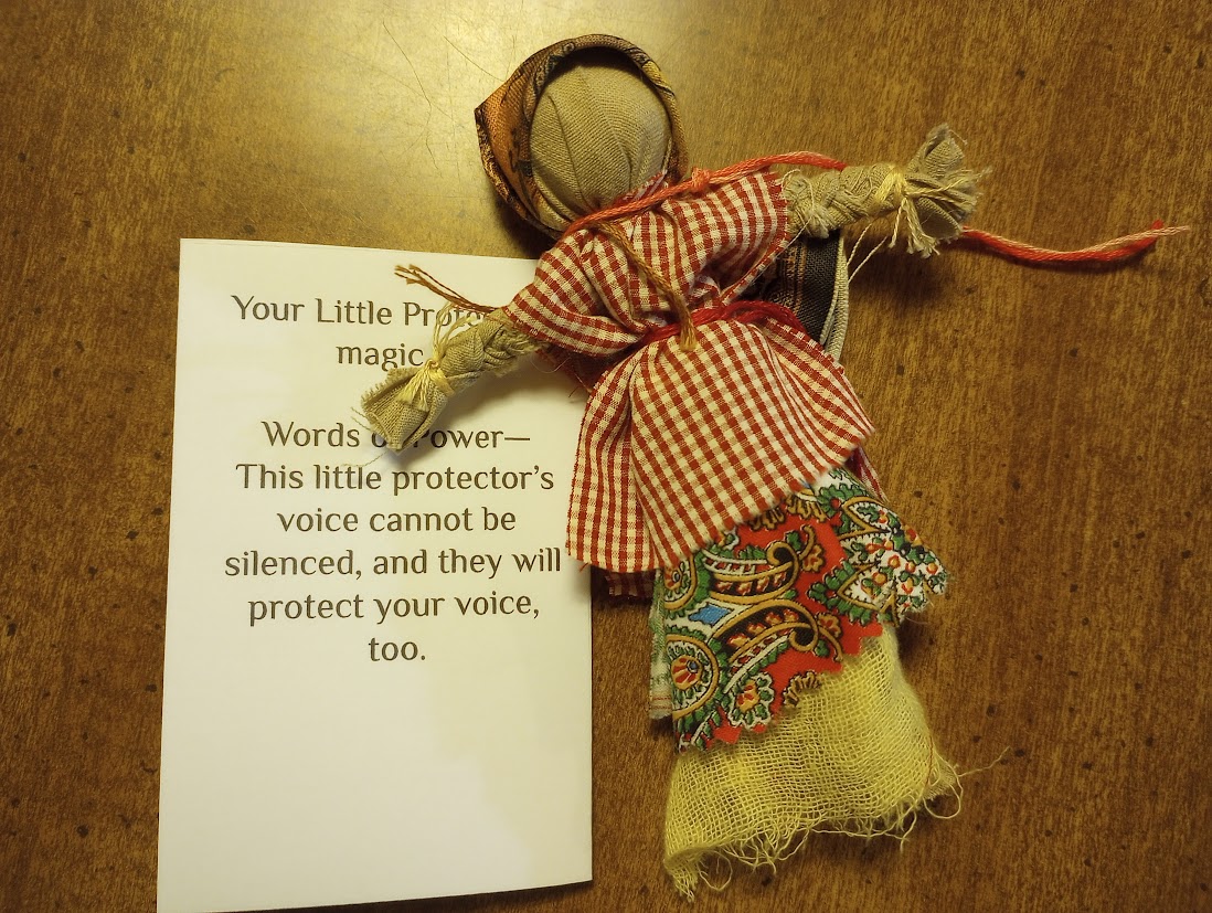 In one of the old tales, the child Vasilisa is sent out into the woods by her wicked stepmother to ask for fire from Baba Yaga, the witch of the woods. Brave Vasilisa does not go alone, however: she is guided and aided by the tiny poppet she carries in her pocket, a doll made for her by her mother before she died. The doll carries her Mother’s Magic. When Vasilisa becomes overwrought at the impossible tasks that Baba Yaga (the Initiator in this story) sets for her, her poppet tells her, “Do not worry, Vasilisa, for the morning is wiser than the evening.”  In the end, the doll helps Vasilisa win her fire from Baba Yaga.