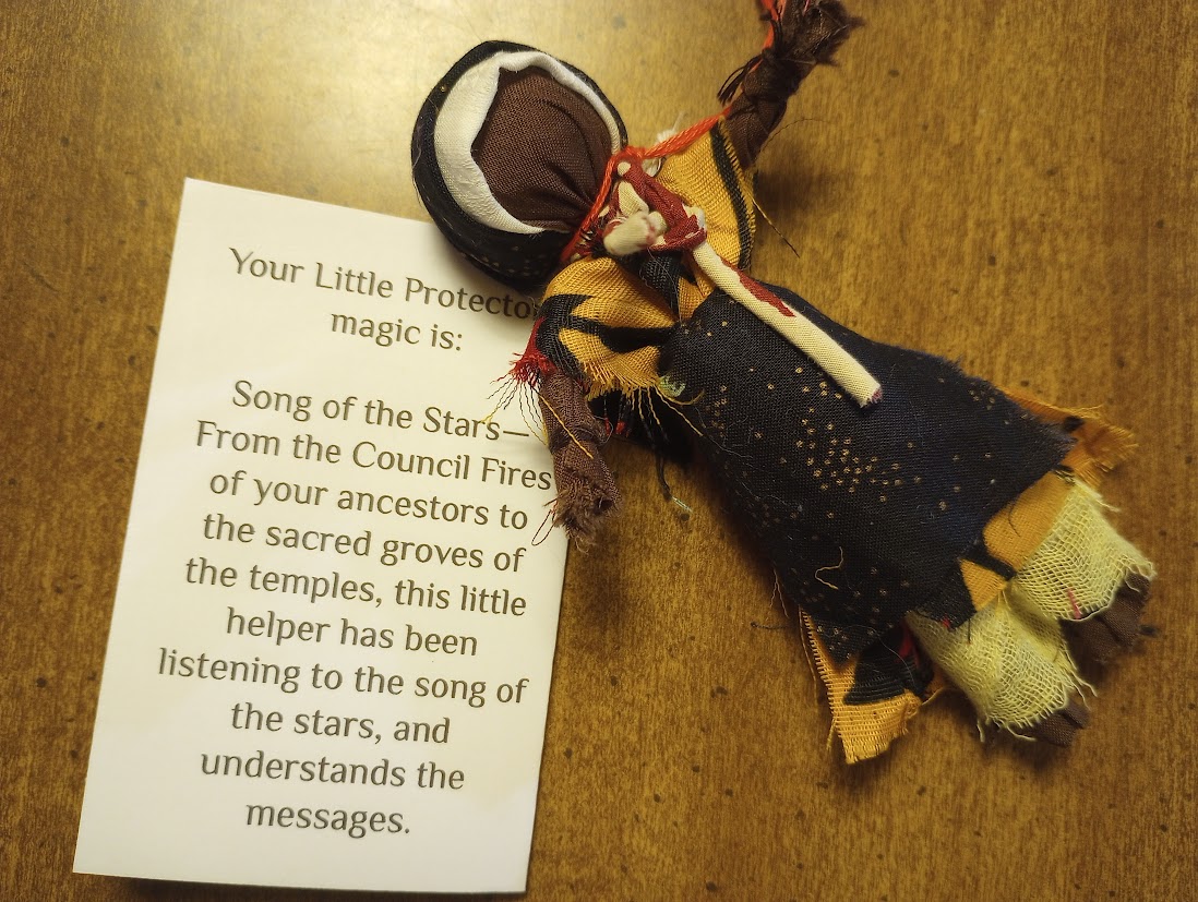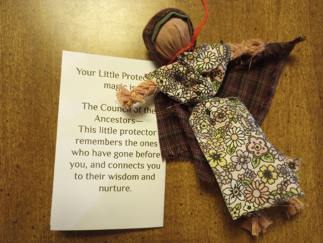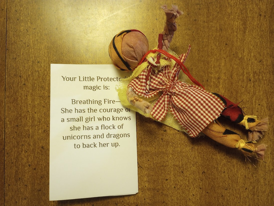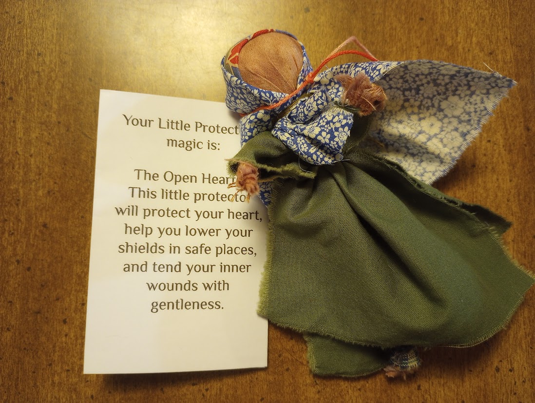 In one of the old tales, the child Vasilisa is sent out into the woods by her wicked stepmother to ask for fire from Baba Yaga, the witch of the woods. Brave Vasilisa does not go alone, however: she is guided and aided by the tiny poppet she carries in her pocket, a doll made for her by her mother before she died. The doll carries her Mother’s Magic. When Vasilisa becomes overwrought at the impossible tasks that Baba Yaga (the Initiator in this story) sets for her, her poppet tells her, “Do not worry, Vasilisa, for the morning is wiser than the evening.”  In the end, the doll helps Vasilisa win her fire from Baba Yaga.
