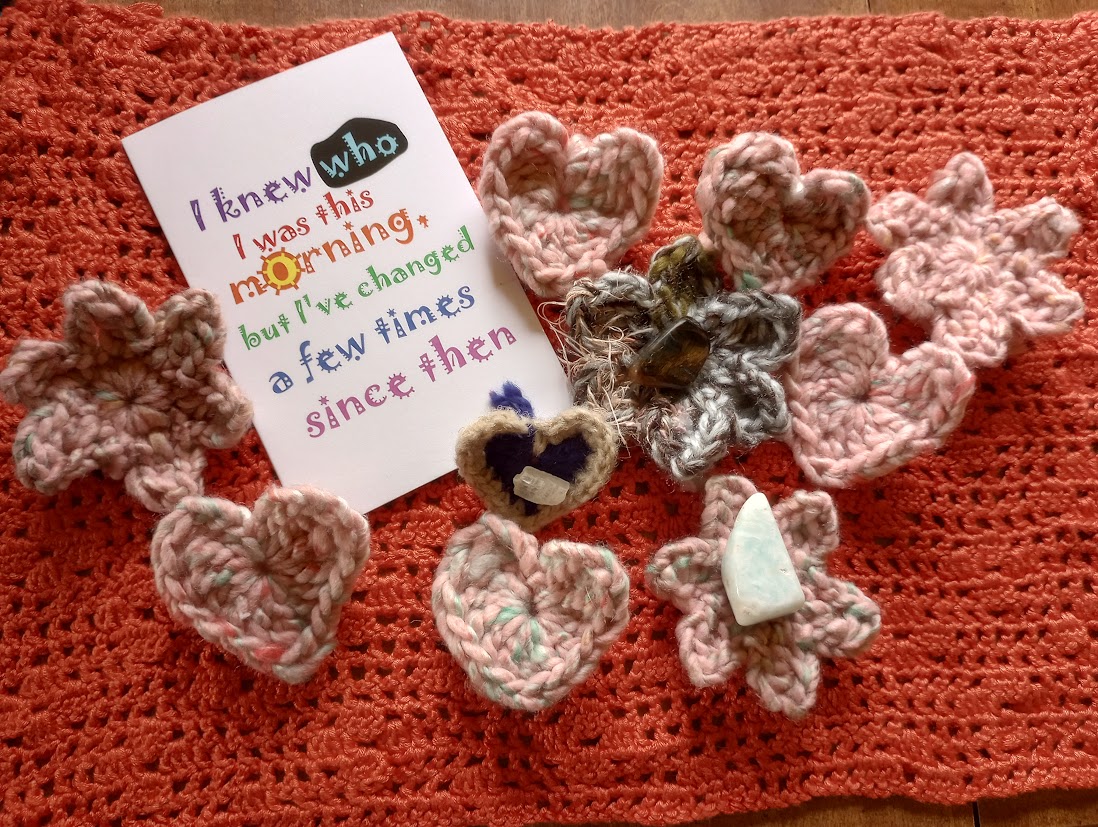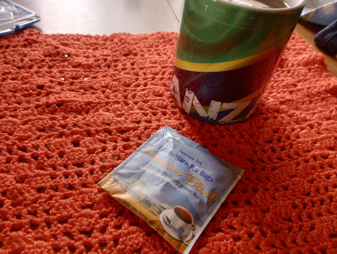 I also made the pink hearts and flowers and the rose today. The little blue heart was a gift from a friend, along with the three stones. I finished the last of my Kilimanjaro tea in my Tanzania mug. Blueberry mango smoothie for supper.
