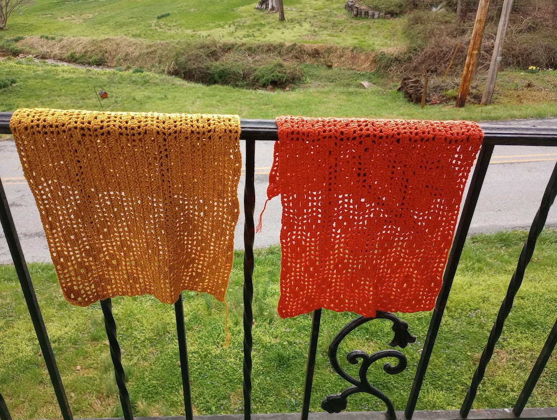 Finished panel 2 in the shrug. This is definitely not going to fit if I construct it as I was thinking of doing. Some re-designing will be necessary. Unlike my knitted sweater, this is not something I would completely frog and re-do.