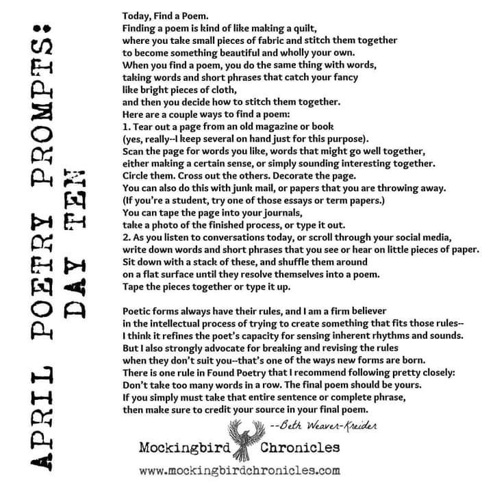 Today’s prompt is to argue a declaration poem. I toyed with taking the words of the Preamble to the Declaration of Independence and rearranging them to say something about shattering the patriarchy and ridding the world of White supremacy. In the end, I came up with this little warm-up for the month: