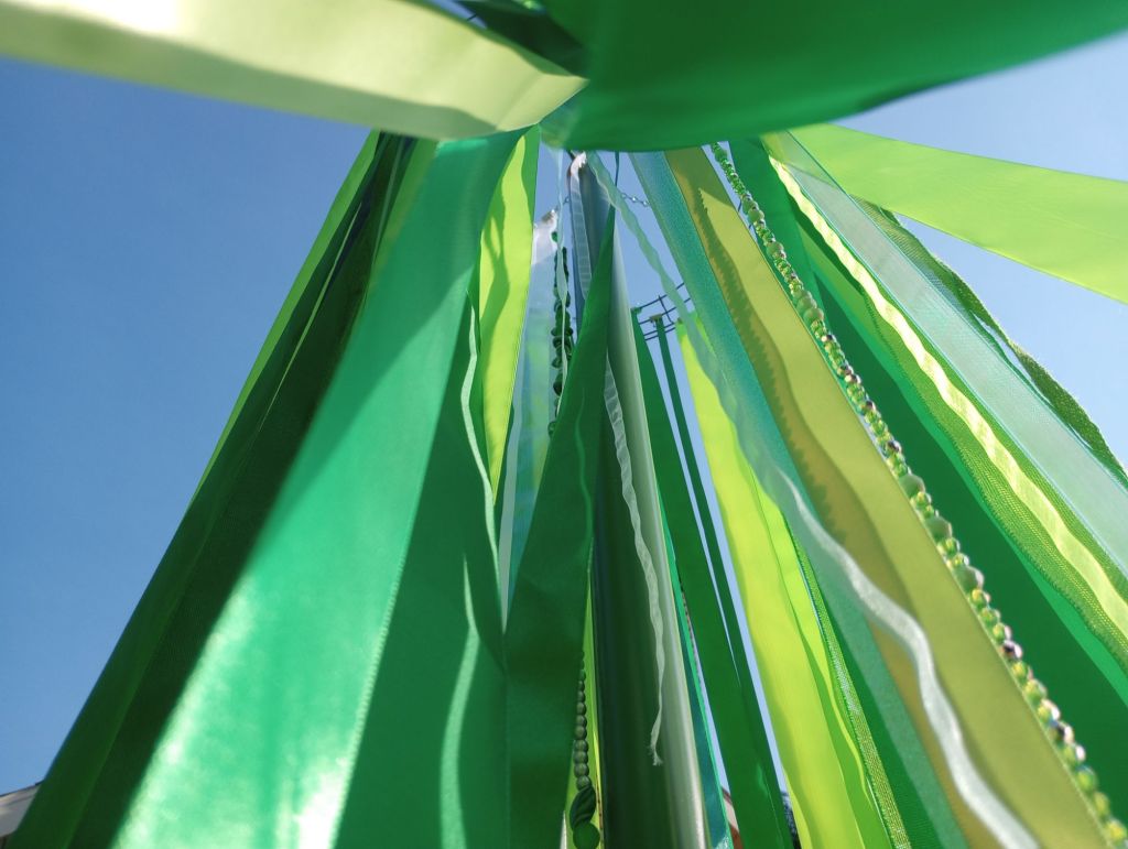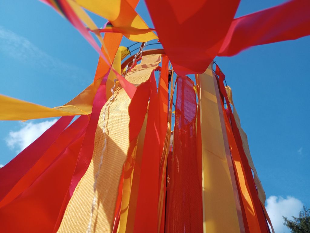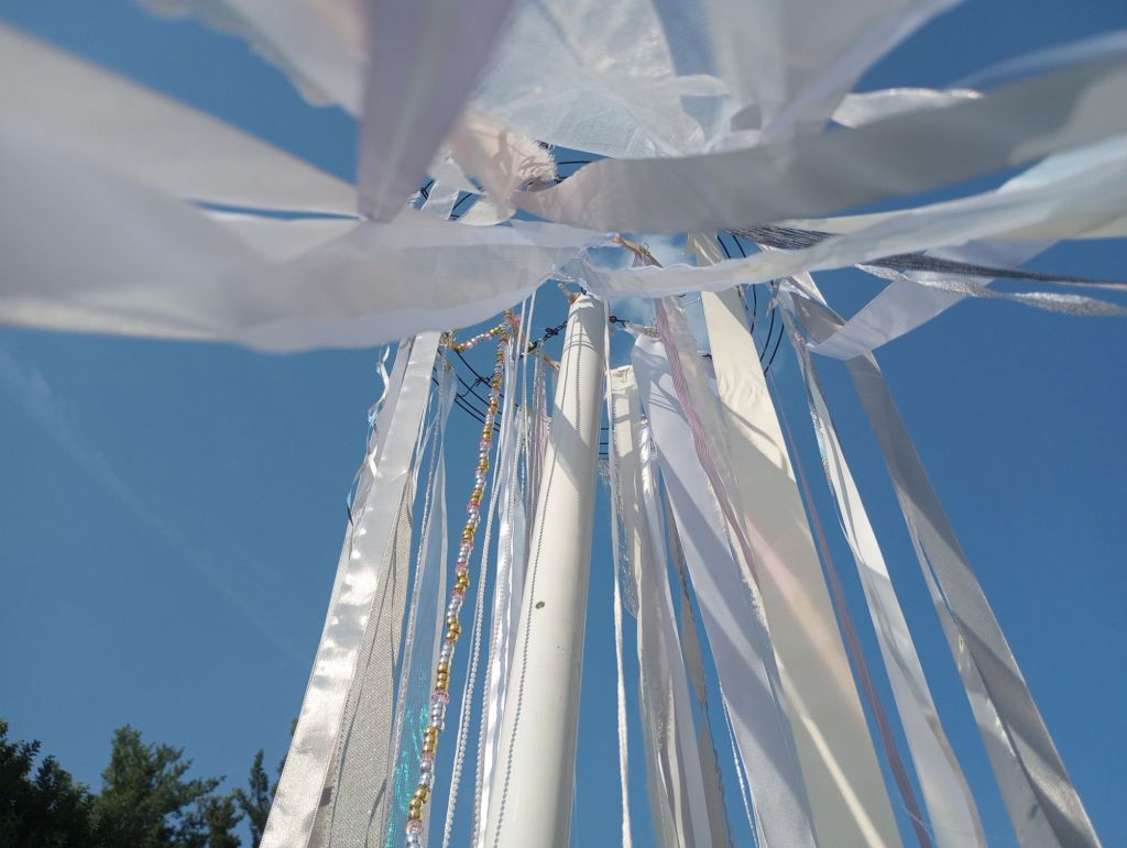 The Wind Wheel’s Ribbons were white, and they reflected into the water of the pool: