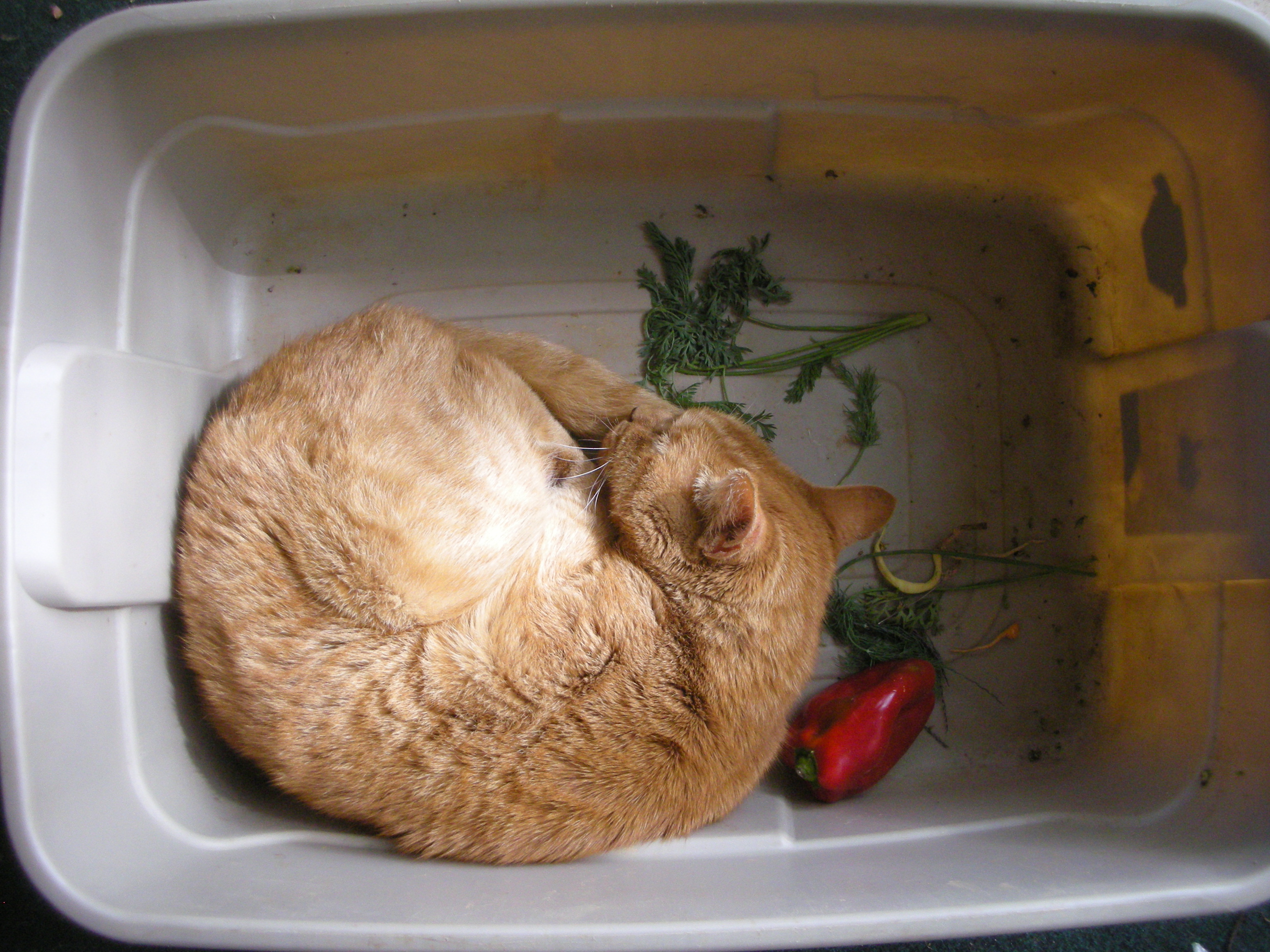 I watch my skittish cat, the longing in his eyes to be part of the action, and the constant anxiety, the startlement at every tiny sound. He’s so sensitive, so wound up, so completely attentive to it all, that he sometimes gets paralyzed, and can’t function except to flee and hide. When we determine that our Work is to pay closer attention, to increase our sensitivity, to care more deeply, it is possible to become as tightly wound as poor Sachs, and tremble in fear at any change in atmosphere. In days like these, it’s important to me that I remember the pink umbrella and the shining eyes and the mist. If I don’t want to get completely jangled and twitchy, I must keep looking for the feathers and the sparkling morning cobwebs, must listen for the racket of robins in the hollow each morning, must breathe in the scent of autumn in the air.